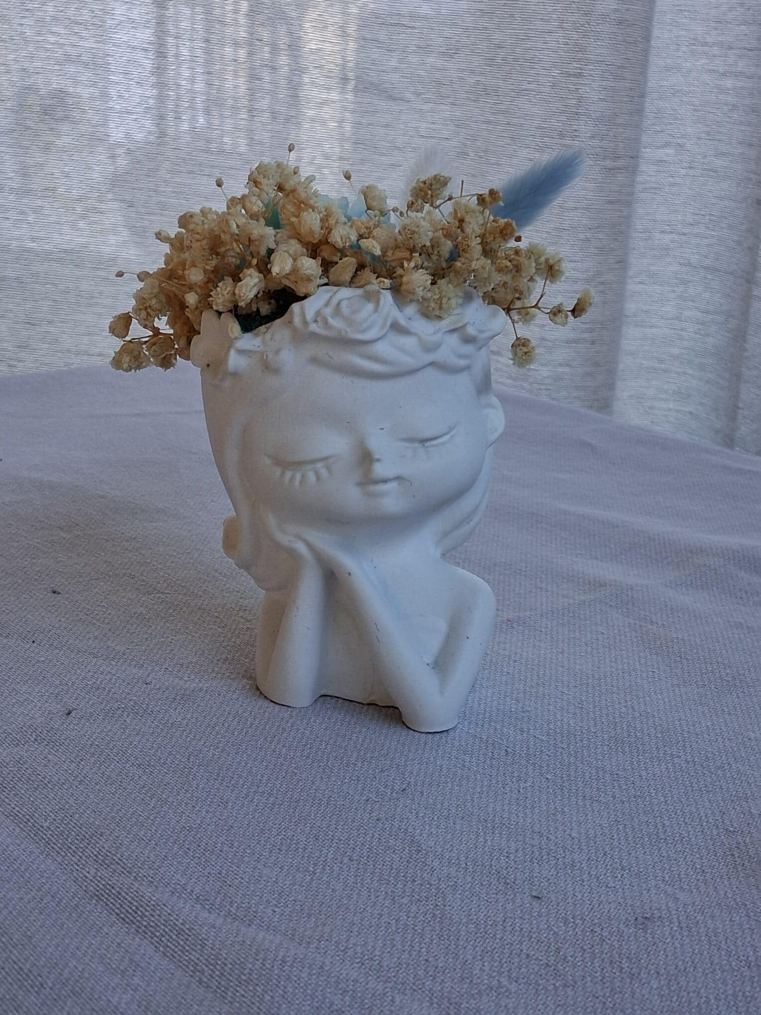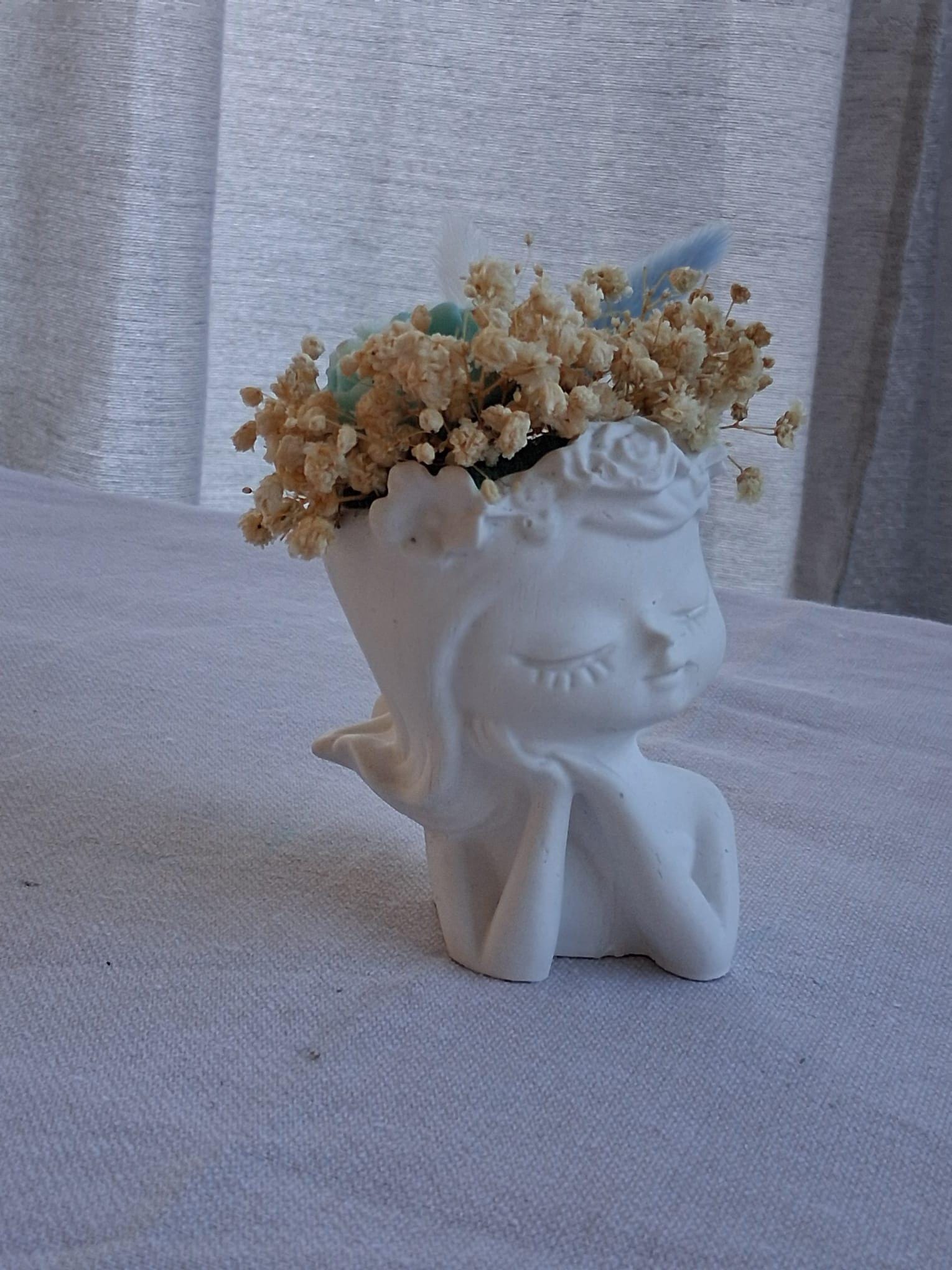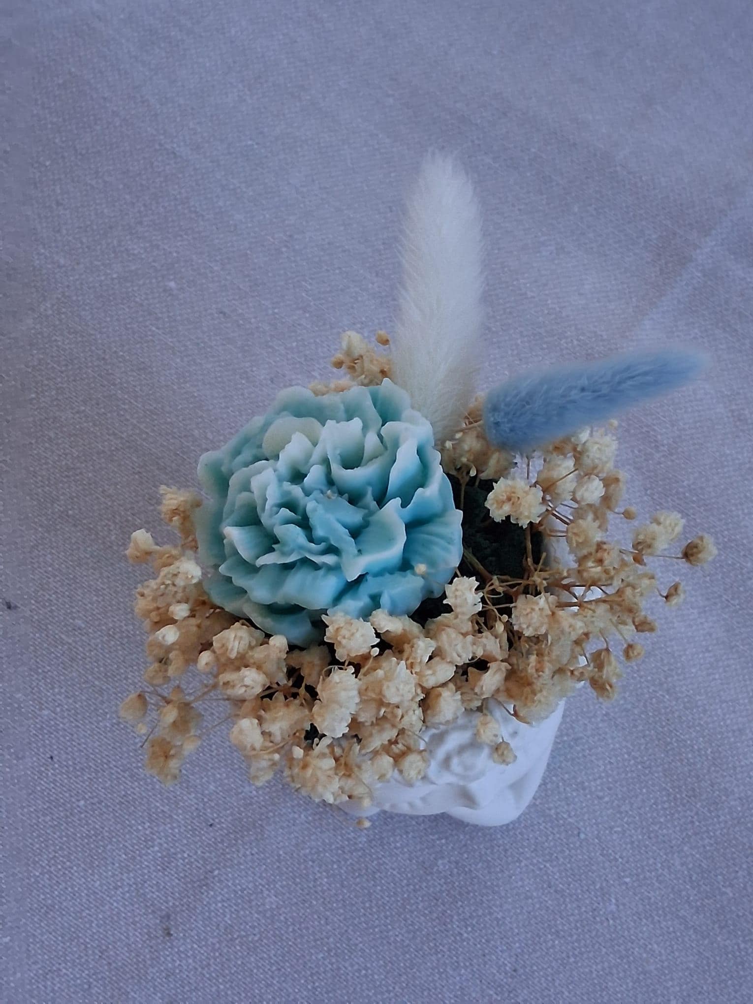 Handcrafted scented ceramic plaster vase with fake flowers and soy wax.For information, contact us at +39 3397420597