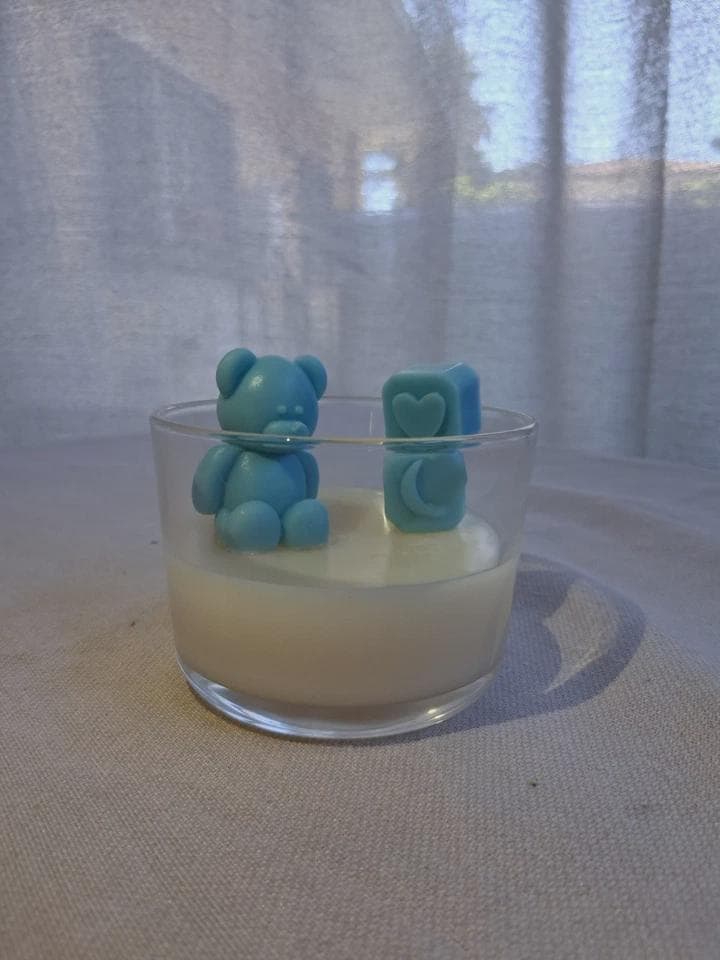 Glass container and scented artisanal soy wax favor.Contact us on WhatsApp at +39 3397420597 for color and fragranceQuantity discounts.